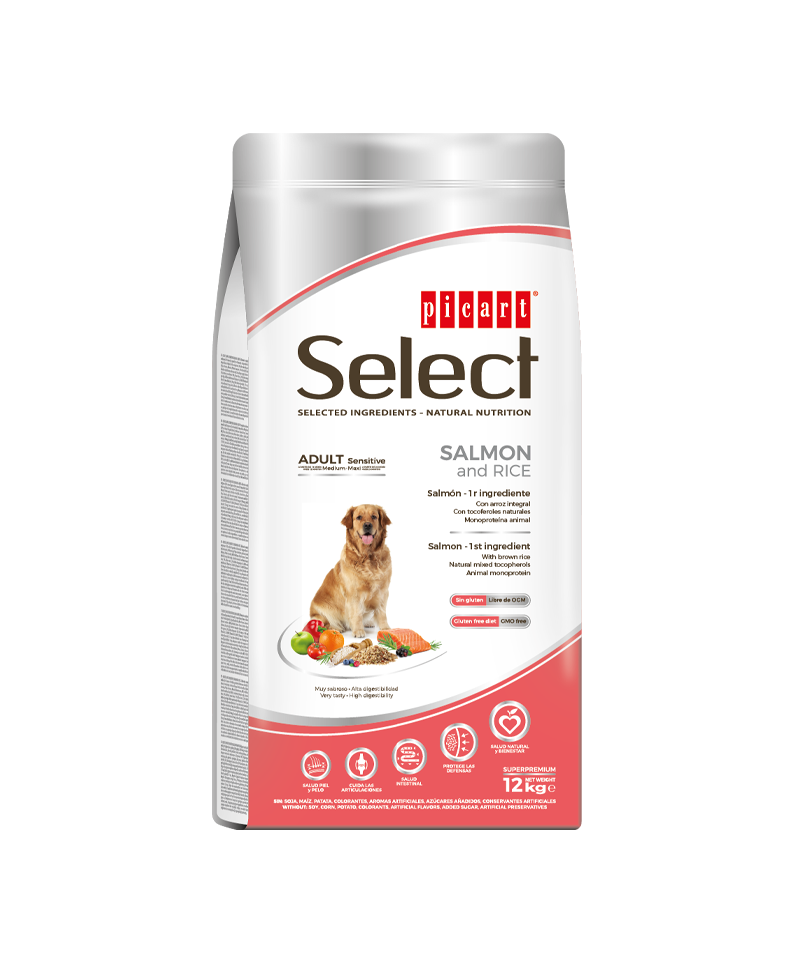 • SELECT Adult SENSITIVE – ზრდასრულის მგრძნობიარე, ორაგულით და ბრინჯით 12კგ