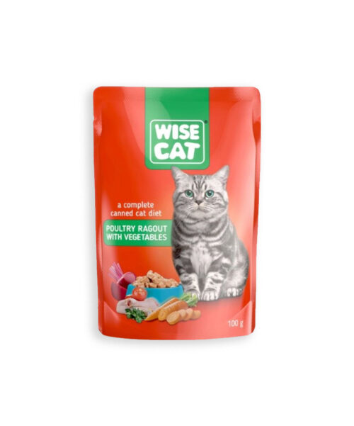 WISE CAT – რაგუ ფრინველის ხორცით და ბოსტნეულით, 100გრ.x24 ცალი