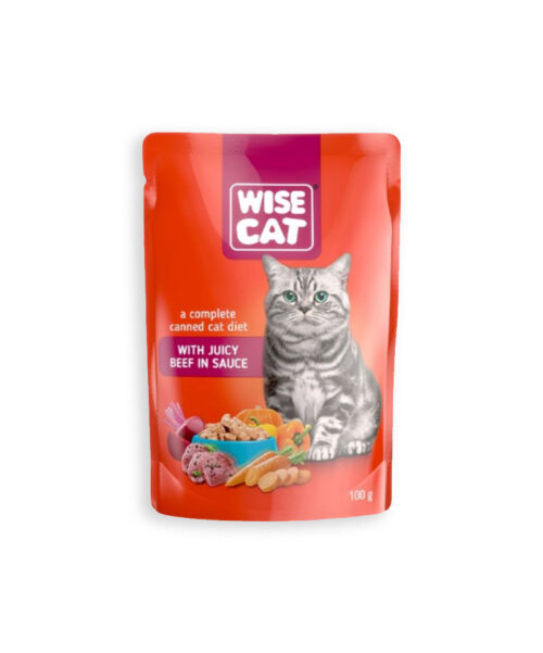 WISE CAT – წვნიანი სოუსი საქონლის ხორცით, 100გრ.x24 ცალი