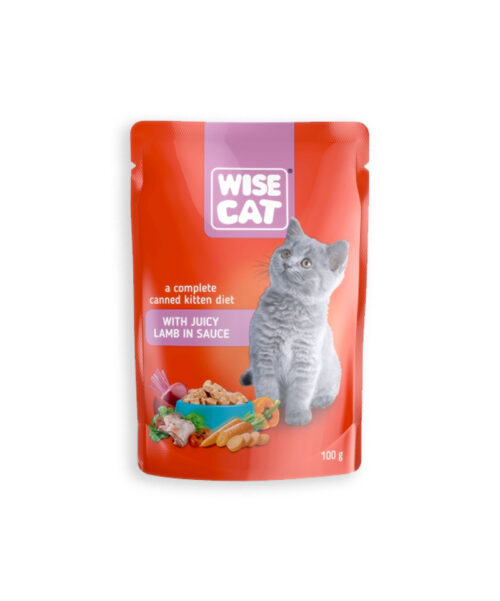 WISE CAT – წვნიანი სოუსი ბატკნის ხორცით, კნუტებისთვის, 100გრ.x24 ცალი