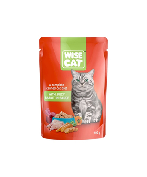 WISE CAT – წვნიანი სოუსი კურდღლის ხორცით, 100გრ.x24 ცალი