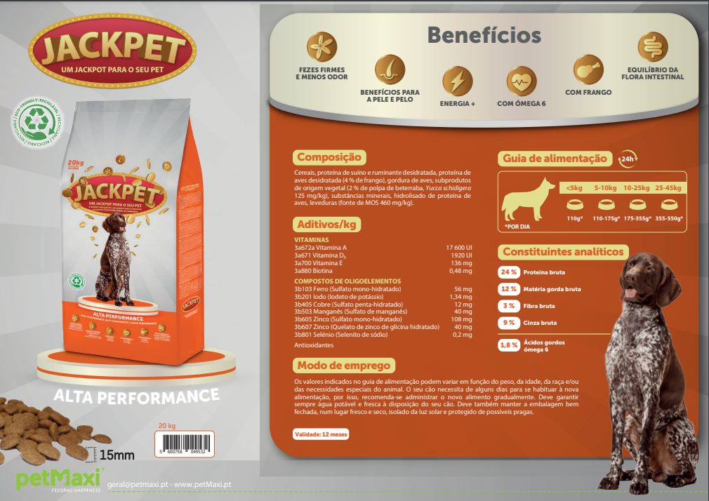 JACKPET Alta Performance – სრული საკვები ინტენსიური ფიზიკური დატვირთვის მქონე ძაღლებისთვის. 20კგ