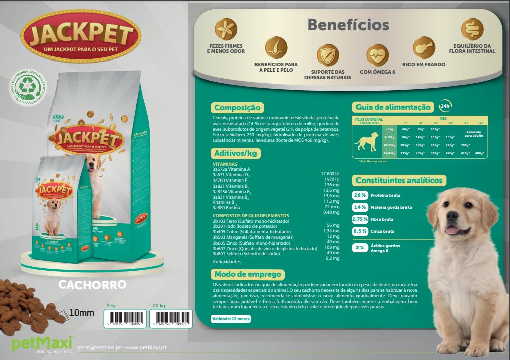 რაოდენობა: JACKPET Cachorro - სრული საკვები 1 წლამდე ლეკვისთვის. 20კგ