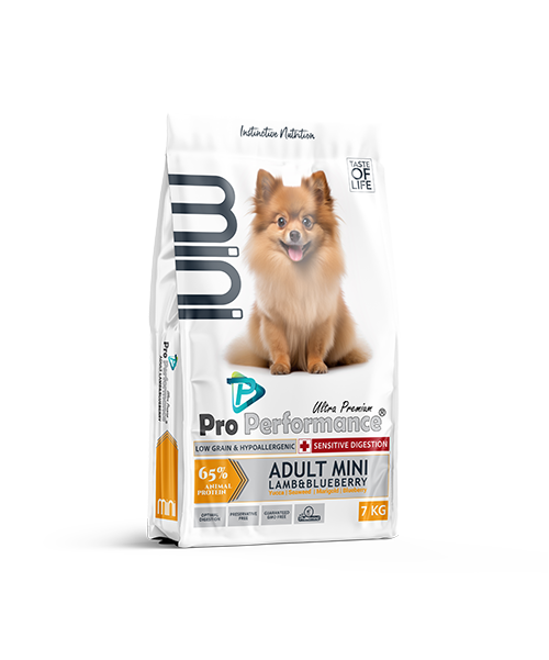 PRO PERFORMANCE – (ჰიპოალერგიული) პატარა ჯიშის ლეკვის საკვები, ბატკნის ხორცით და მოცვით, 7კგ